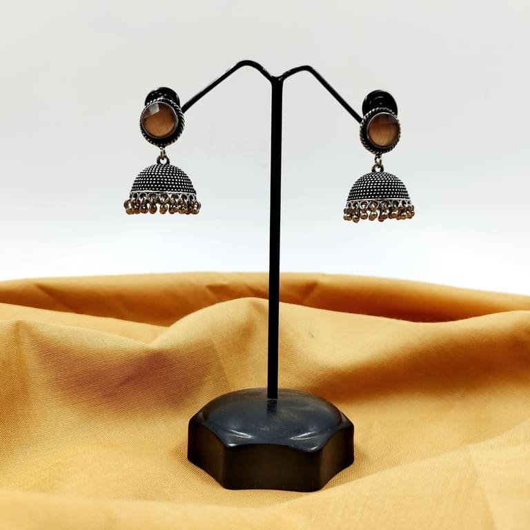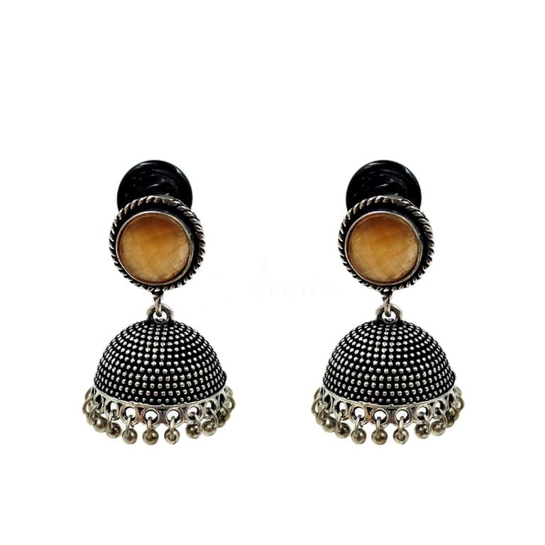 ARNAS 1 PAIR PACK OF GOLDEN BRASS EAR STUD WITH YELLOW MONALISA STONE